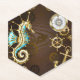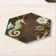 Wooden Background with Mechanical Seahorse Paper Coaster