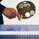 Wooden Background with Mechanical Seahorse Ping Pong Paddle