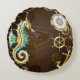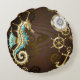 Wooden Background with Mechanical Seahorse Round Cushion