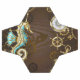 Brown wooden background with sea, mechanical ridge, an antique steering wheel, golden anchor and various gold and brass gears. Steampunk style.
