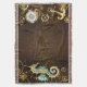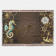 Wooden Background with Mechanical Seahorse Throw Blanket