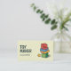 A business card with a soft pastel yellow background for a toy maker or a toy store featuring a stack of brightly coloured wooden toy blocks in a hand-drawn feel. The blocks are arranged in a whimsical tower with a single red block positioned on top, displaying a customisable text, and a single, stylised star sits near the bottom corner. It could be used by a handcrafted making wooden toys, construction or educational games, etc.