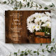 Invite guests to keep the party going the morning after the marriage ceremony with the charming Wooden Bucket and White Daisies Country Post Wedding Brunch Invitation. This rustic chic custom farm or ranch style After Wedding Breakfast or Luncheon Invite features a quaint digitally enhanced floral photograph of a wooden bucket filled with white daisy flower blossoms and a weathered brown barn wood background.