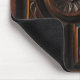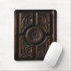 This mousepad is decorated with an image of a beautiful artistic wood carving in shades of brown, gold, mahogany and black. A central abstract circular flower image has petals radiating out to a carved circle which is surrounded by four sections. Each section has abstract leaf carvings.