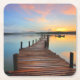 Wooden Dock Seascape in Colourful Sunset Square Paper Coaster