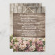 Wooden Fence with Painted Roses Wedding Invitation. Wooden sign on the fence with the wedding announcement. The fence image continues on the back. Personalise this template with your information.