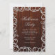 This grey and brown, vintage Halloween Invitation is accented with flowing flourish on an illustrated wooden ombre background.