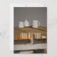 Wooden Rustic Table, Tea Coffee Pot, White Cups / Mugs 'Your Text Here!' invitation card to add to your special occasion cards / mailing list accessories. A cool gift / present idea for all who love positive vibes colours, humour and funky prints, custom design personalised original and unique items, nature, summer happy vibes etc. Grey, countryside, rural, dining, lunch etc.