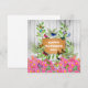 A wooden sign on a rustic grey fence says "Happy Mother's Day", while a garden of beautiful pink daisies and green leaves host a flight of colourful butterflies. Beautiful, Spring design. The back is blank, to be personalised with your own greeting.