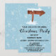 Celebrate the holiday season with this festive Xmas wooden arrow sign covered with snow company annual holiday Christmas party invitation. The party details are written in a whimsical, bold black script typography with a light blue background with falling white snowflakes. This invitation is perfect for a holiday/ Christmas/ winter party!