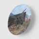 The clock did not take as long to arrive as I thought it might and was extremely well packaged. I didn't do the measurements so I didn't realize it is a little smaller than the average clock but that does not matter (just make sure you check if that's important to you).It is really nifty! It seems very solid and well made not flimsy at all. It has been going well and has kept good time in its few weeks on my wall. Nice product. Gets noticed too! Nicer in real life than the picture but true to the picture