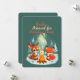 Celebrate the season with this heartwarming Christmas card featuring a baby deer, bunny, and fox gathered around a campfire roasting marshmallows. The front design is set against a soft forest green background with snowy pine trees and a glowing firelight effect, creating a cosy woodland atmosphere. The cheerful text, "Gather Around for Holiday Cheer!", is written in cosy, handwritten lettering. The back design includes a tiny campfire with sparks and the heartfelt message: "May your holidays be filled with warmth and joy! - [Your Name]." Fully customisable, this card is perfect for spreading festive cheer and woodland whimsy!