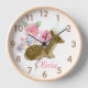 A cute little baby deer with watercolor pink flowers and personalise with your daughter's name. This nursery clock will make a great baby shower gift. Soft pastel colours. Original art by SuzanneHeinCreations © 2022 Suzanne Hein All Rights Reserved.