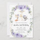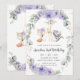Woodland Animal Purple Floral Greenery Birthday Invitation