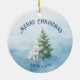 Celebrate the holiday season with this double-sided, customisable, festive Christmas ornament featuring a charming winter scene on a soothing watercolor background. One side there is a picturesque scene of adorable forest animals, surrounded by snow-covered trees. The backside features an individual arctic fox wishing you or your loved ones a Merry Christmas. The frosty blue and white colour palette creates a peaceful, snowy wonderland feel. Personalise with your family name and the year to add a special touch. Perfect for spreading holiday cheer to loved ones, this ornament exudes warmth, magic, and personalised elegance. Please email me with any questions about editing or design at pawsnclawspaperie@gmail.com.
