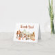 Cute thank you card for your baby shower with a rustic autumn-themed design. The front features watercolor illustrations of woodland animals camping with their tent and campfire in the mountains and forest, fall foliage and pumpkins, and "Thank You!" in a terracotta script. On the inside, personalise your thank you message or leave blank for a handwritten note.
