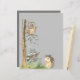 Four cute funny woodland animals ( racoon,owl, fox,hedgehog) with a tree and foliadge in a light grey background from the woodland animal collection. On the back an owl a racoon and a hedgehog under space for wording.