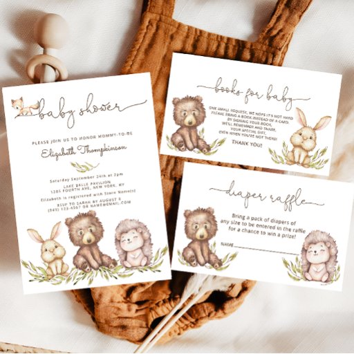 The design is a delightful work of art in which the cute animals are exquisitely drawn in great detail, their playful shapes and expressions bring a warm and tender feeling to the invitation. From a cute bear cub to a cute fox, each creature is captured with a sense of love and affection. The watercolor strokes add a playful and childlike texture, as if painted by a whimsical fairy tale artist. The invitation is an invitation to celebrate new life, inviting you to enter the forest with a sense of wonder and anticipation. It exudes a sense of joy and excitement that fills the heart with happiness. The watercolor greenery seems to embrace and welcome the new arrival like a cosy blanket, creating a sense of comfort and security that invites the viewer to step into the design and immerse themselves in the gentle beauty of the forest. The invitation feels alive, as if the cute animals and greenery are welcoming the new arrival with open arms. It is a beautiful tribute to the preciousness and wonder of new life. For more advanced customisation of this design, simply select the "Customise It" button above! Matching items available. See full collection here: https://www.zazzle.com/collections/woodland_forest_animals-119580618205325050
