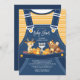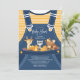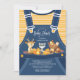 Woodland Baby Shower Invitation featuring the cutest pair of baby overalls with an adorable woodland forest animals. Unique Boys baby shower invite for a woodland boys baby shower theme.