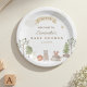 This woodland animals baby shower paper plate features charming watercolor forest animals painted in soft neutral tones with green and yellow accents. Designed for a gender neutral baby shower, this paper plate is perfect for a woodland baby shower theme, rustic celebrations, or nature-inspired parties.