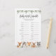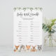 Woodland animals themed baby shower word scramble game card features a watercolor woodland animals illustration and watercolor greenery eucalyptus garland and elegant handwritten style font.
