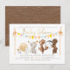 We're wild with excitement and happy to say a sweet little baby is on the way! This gender-neutral shower invitation features "baby shower" in faux gold script lettering over a marching band of woodland animals playing all different kinds of instruments, above them, there is boho bunting in shades of green, yellow, pink, blue, and orange. Underneath the forest animals are the mum-to-be's name and your event details. Cards reverse to a wood pattern against a brown background. Great for baby boys or baby girls expected around the fall season. Click on "Personalise" to change the wording. Feel free to contact me if you have any questions!