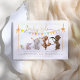 We're wild with excitement and happy to say a sweet little baby is on the way! This gender-neutral shower invitation features "baby shower" in faux gold script lettering over a marching band of woodland animals playing all different kinds of instruments, above them, there is boho bunting in shades of green, yellow, purple, blue, and orange. Underneath the forest animals are the mum-to-be's name and your event details. Cards reverse to a wood pattern against a brown background. Great for baby boys or baby girls expected around the fall season. Click on "Personalise" to change the wording. Feel free to contact me if you have any questions!