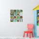 This is a cute pattern consisting of an owl, rabbit, a leaping deer and a fox against various colours of green blocks. Leaves and mushrooms are scattered throughout. Fun image for baby, young child, baby’s nursery, daycare facility, playroom or any woodland theme lover. Original design is by Christie Black of Creations from the Heart.