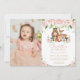 Woodland Animals Blush Floral 1st Birthday Photo Invitation