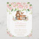 Woodland Animals Blush Pink Floral 1st Birthday Invitation
