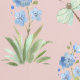 Watercolor baby deer fawn sleeping in the grass with flowers, dragonflies, and bee on pink background.