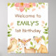 Woodland Animals Floral First Birthday Welcome Poster
