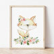 Add the finishing touches to your baby’s nursery or child’s bedroom with these gorgeous art prints! Design features woodland animals (fox, deer, bunny), pink watercolor flowers and greenery.