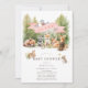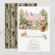 This cute girl's baby shower invitation features woodland animals, such as a fox, raccoon, hedgehog, squirrel, mouse, deer, bunny and bear in a forest. The reverse side features a green background with trees and bears. Personalize it for your needs. You can find matching products at my store.