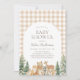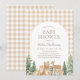 Celebrate the arrival of a little one with this woodland themed baby shower invitation.