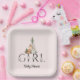 I hope you like this woodland fox and bunny rabbit with the word Girl with florals on a pink watercolor background. Matching invitations and party supplies are available in this collection suite.