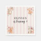 Add a magical woodland touch to your child’s party with these woodland animals birthday napkins! Featuring soft blush pink stripes, adorable watercolor woodland friends (bear, fox, bunny, and owl), and delicate florals, these napkins are the perfect match to your woodland party invitations and décor.