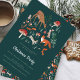 Cute rustic green invitation featuring a cute nostalgic woodland green & pink traditional classic Christmas illustration with woodland forest animals in nature with snow. Perfect to invite your loved ones to a Christmas Party. Original artwork by Caroline Bonne Müller