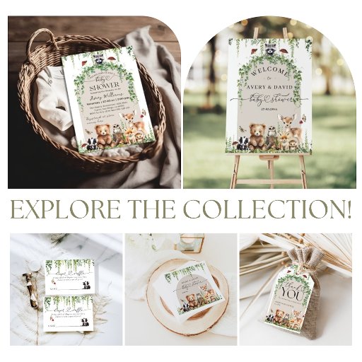 Woodland Animals Greenery Mushroom Baby Shower Poster