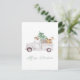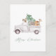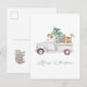Cute woodland animals including a bear, squirrel, fox, and deer in the bed of a rustic white pick up truck hauling a Christmas tree. Personalise with your own information.
