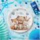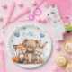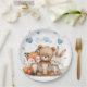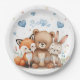 Woodland Animals Party Pastel Blue Hearts Floral Paper Plate