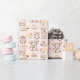 1st, 2nd or any Birthday personalised wrapping paper featuring adorable boho woodland animals girls with flowers, cake, balloons, and pampas grass. The soft pastel colours, classic beige, pink, yellow, light green, and light brown give it a cosy feel of the end of summer or the start of fall. All is placed on the blush pink background. Easily personalise the text - Kate Eden Art