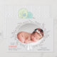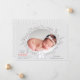 Copyright © 2018 Socialite Designs Inc. & LICENCORS - This beautiful photo birth announcement card has woodland bunnies on the front and a photo area surrounded by a simple wreath. The background colour is a soft dove grey. The back has woodland animals with a polka-dot background.