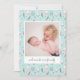 Birth announcement card features pattern of woodland animals on a soft baby blue with your favourite photo. Script and classic typography is used. Email me @ JMR_Designs@yahoo.com if you need assistance or have any special requests.