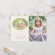 This whimsical girl's picnic/tea party birthday photo invitation features woodland animals such as a squirrel, bunny, otter, and hedgehog on picnic by the river under the trees. The reverse side features a cream background with botanical patterns. Personalise it for your needs. You can find more bunny products at my store.