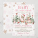 Woodland Animals Pink Christmas Winter Baby Shower Invitation
