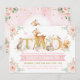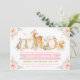Woodland Animals Pink Gold Floral 2nd Birthday Invitation