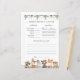 Woodland animals themed baby shower predictions and advice card features a watercolor woodland animals illustration and watercolor greenery eucalyptus garland and elegant handwritten style font.