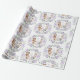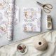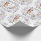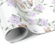 Woodland-themed wrapping paper featuring sweet forest animals and soft purple floral greenery wreath.