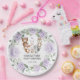 Woodland Animals Purple Flower Wreath Baby Girl Paper Plate